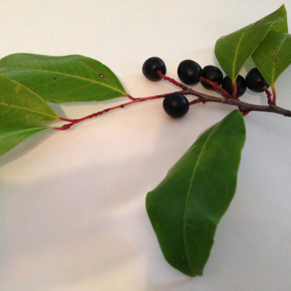 The fruits are tiny black cherry laurel fruit. Bees and butterflies use the flowers as a nectar source.